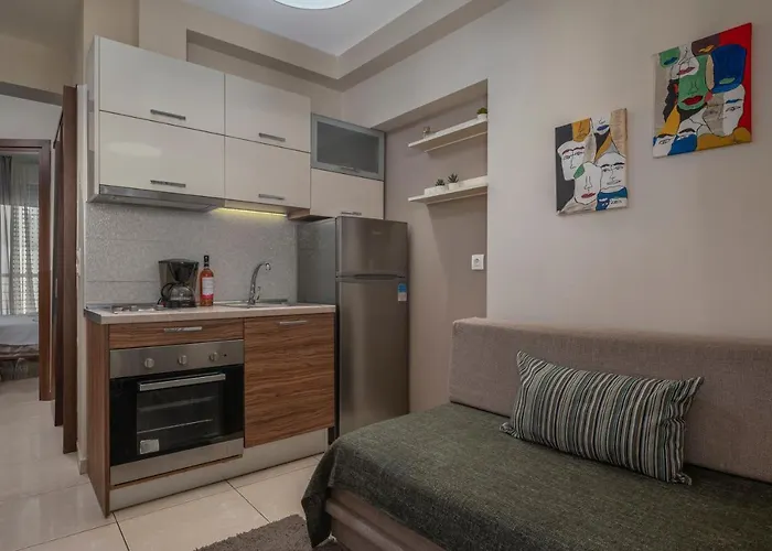 Los huéspedes que se alojan en el Apartamento Kolomvou New Building Flat tienen acceso a una cocina completa. La parada de autobús Antigonidon está muy cerca de este alojamiento.